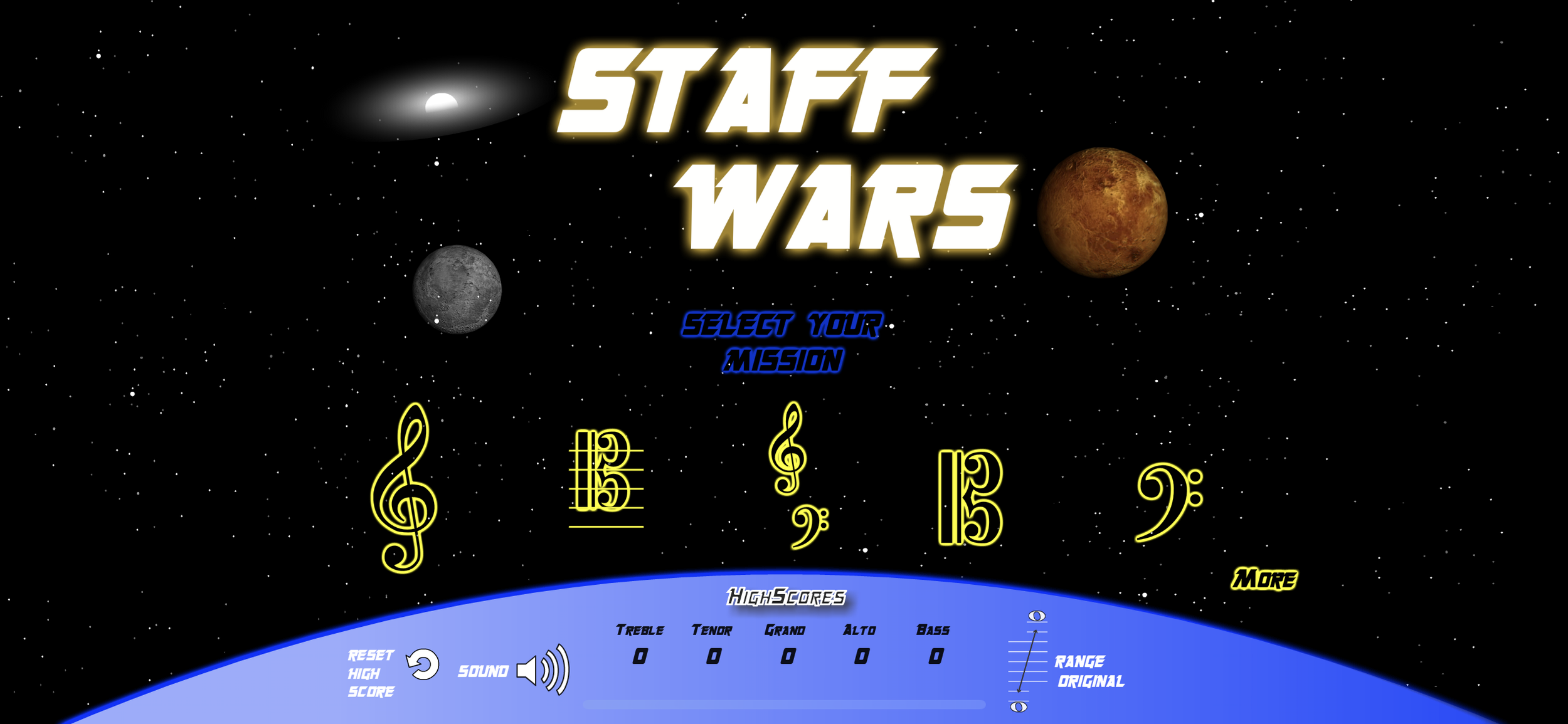 Staff Wars combines learning with a retro arcade feel. Students “shoot” notes by identifying them correctly, with increasing speed and challenge as they improve. It’s great for older children or those who enjoy a fast-paced, competitive approach, and it allows practice across different clefs and note ranges.